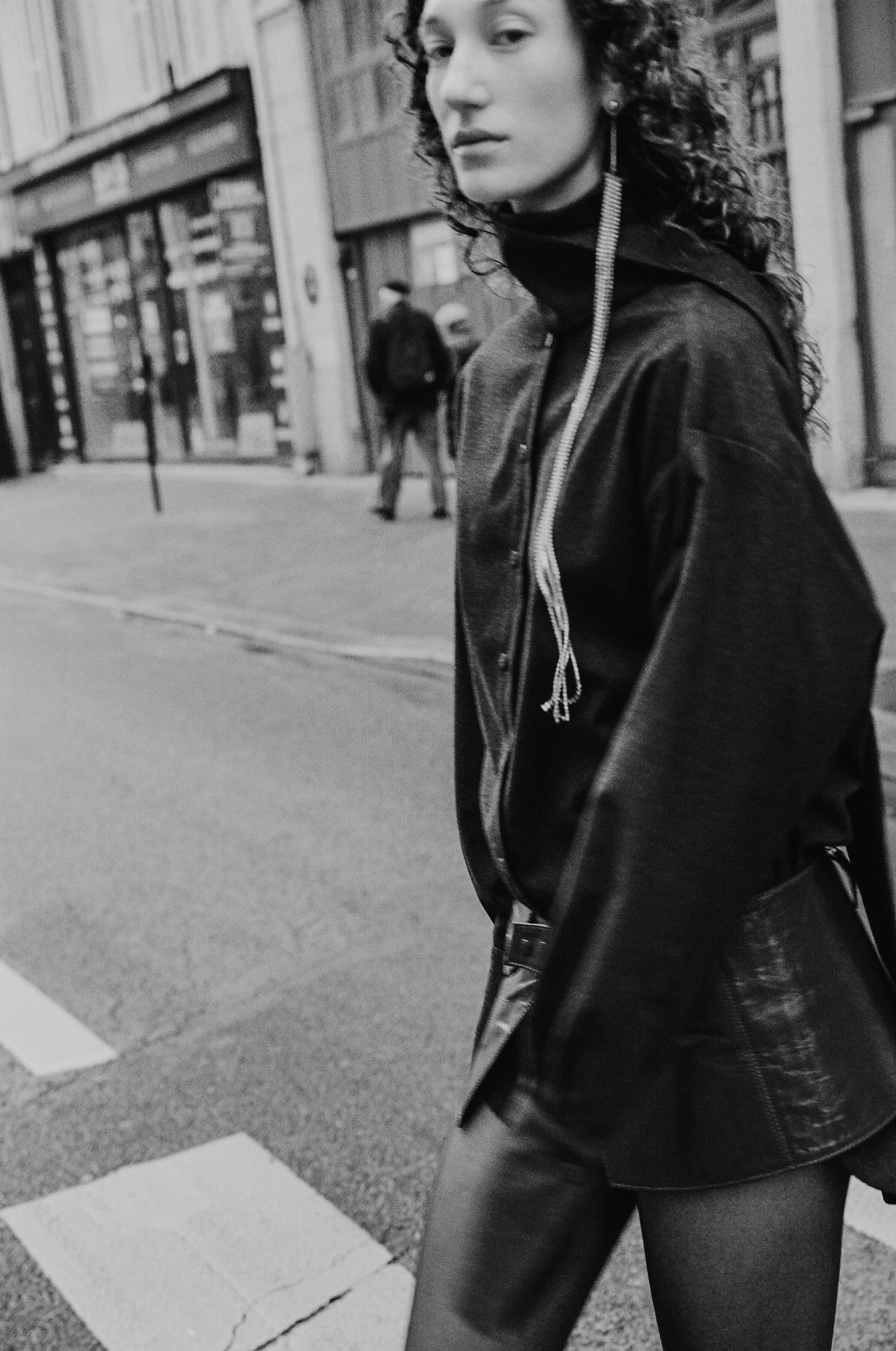 to elaborate on all her contrasts: bold but calm, social but reserved, chic but funky.