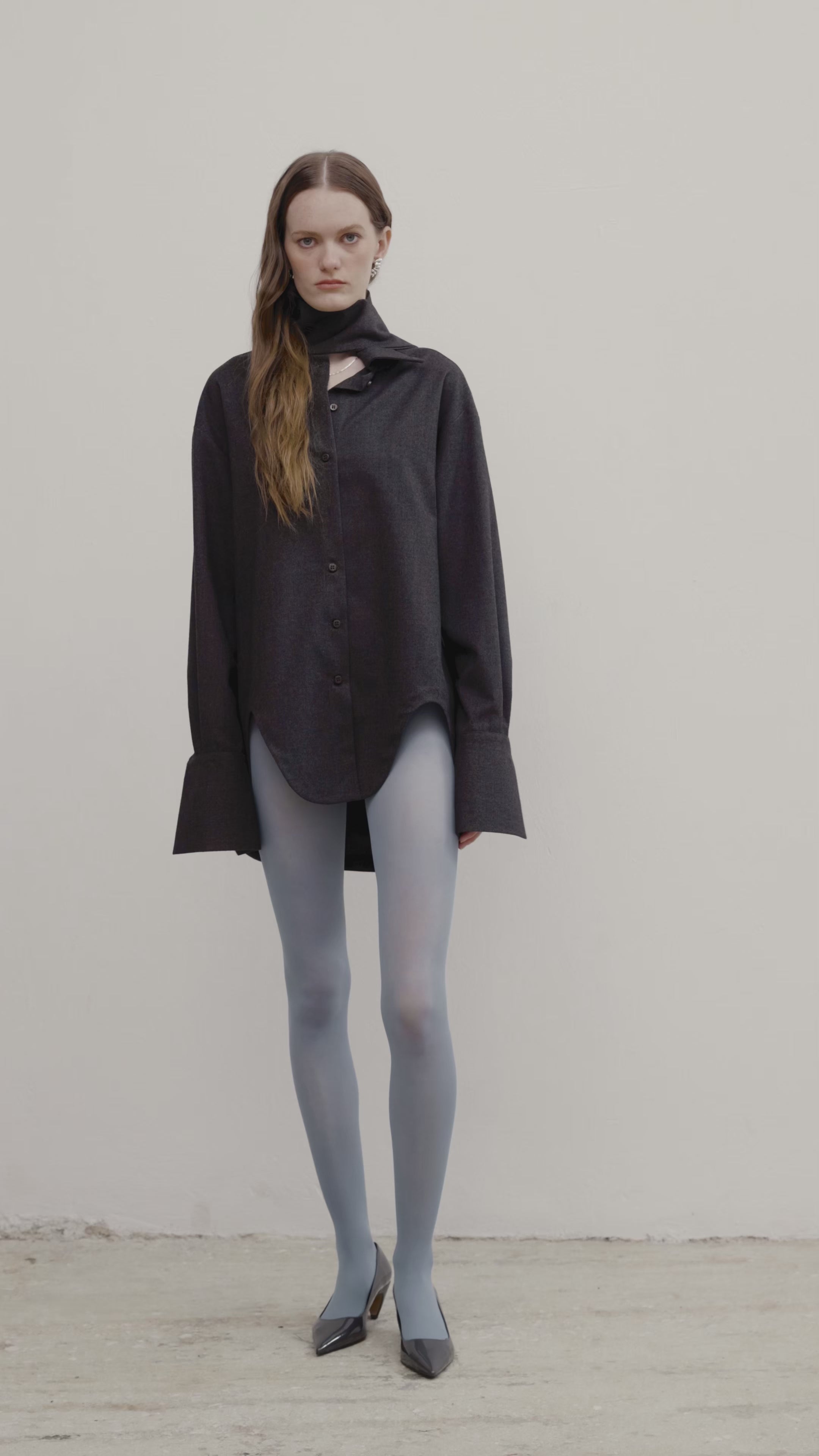 Flannel Shirt with integrated scarf collar & the signature Athénée Studios cutout front