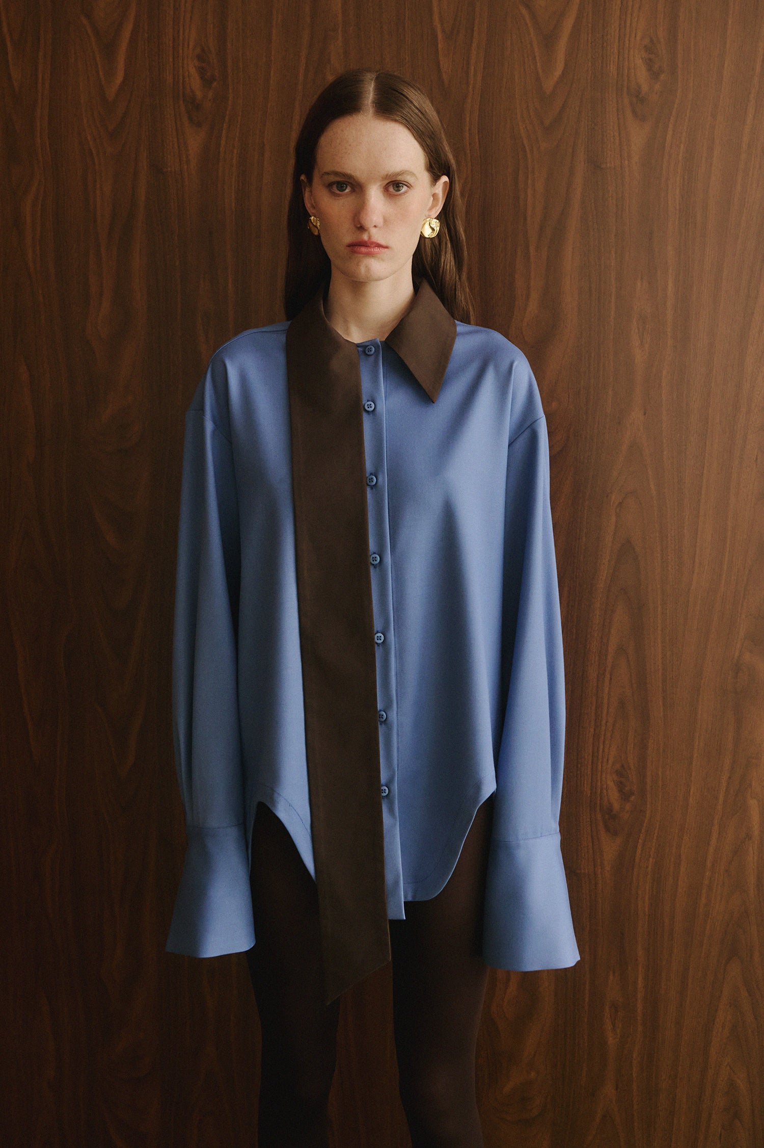 Shirt with integrated scarf collar in contrast color